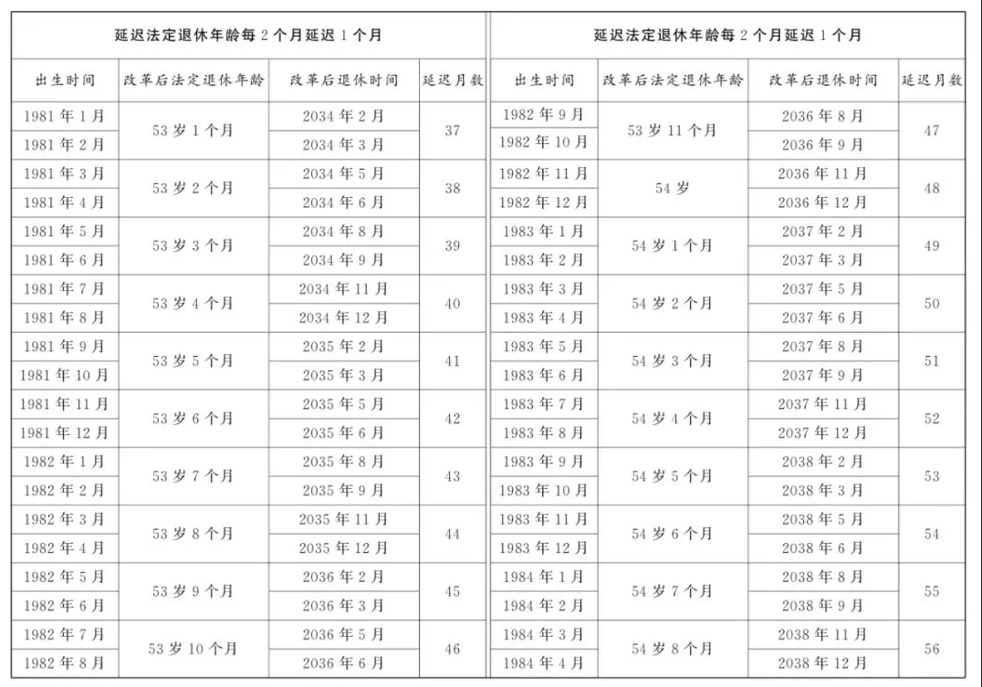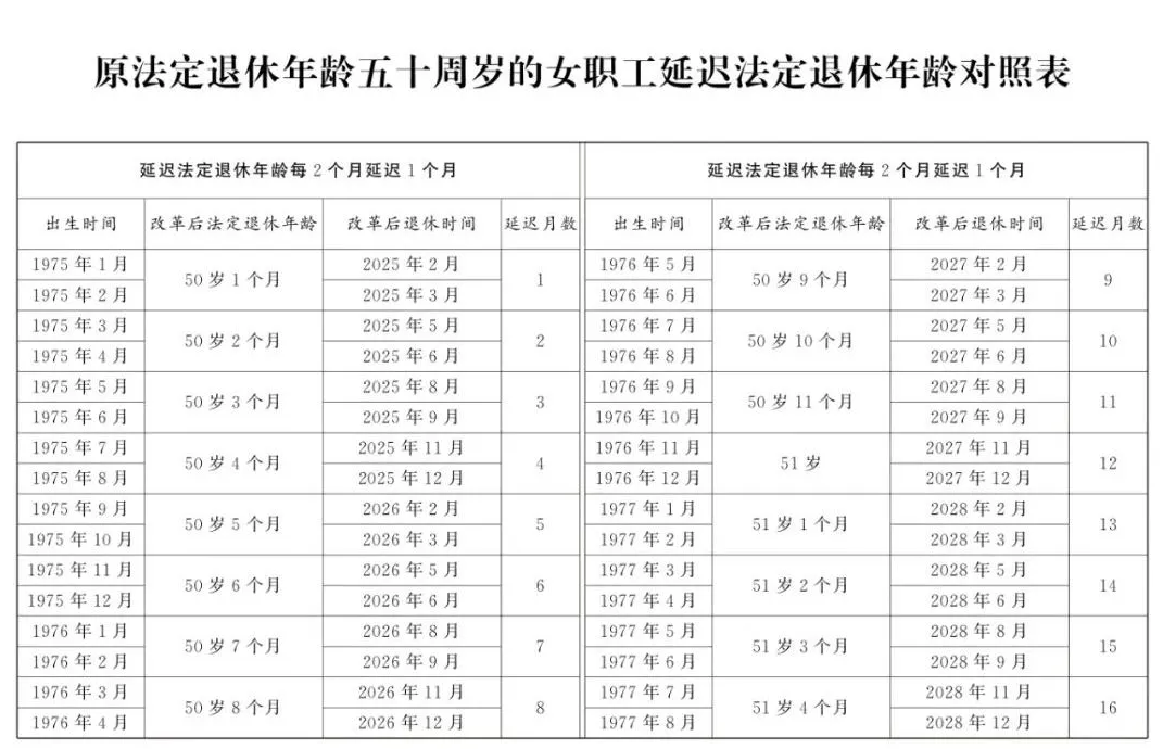 从2025年1月1日起,原法定退休年龄为五十周岁的女职工,法定退休年龄每二个月延迟一个月,逐步延迟至五十五周岁。