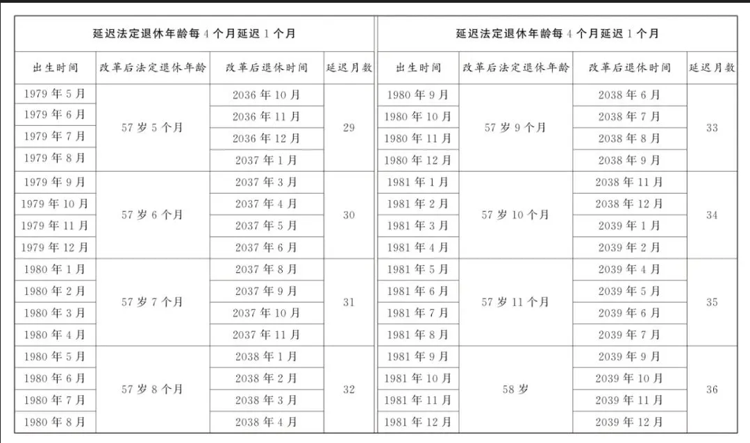具体的男职工延迟法定退休年龄对照表如下图所示⬇️